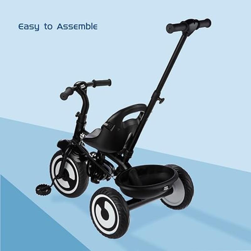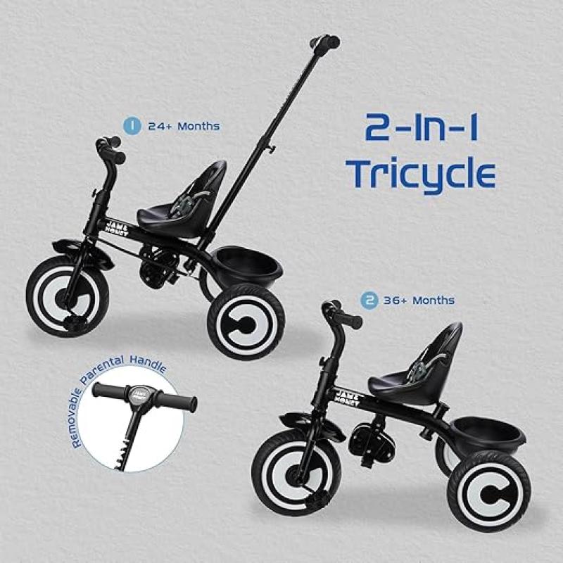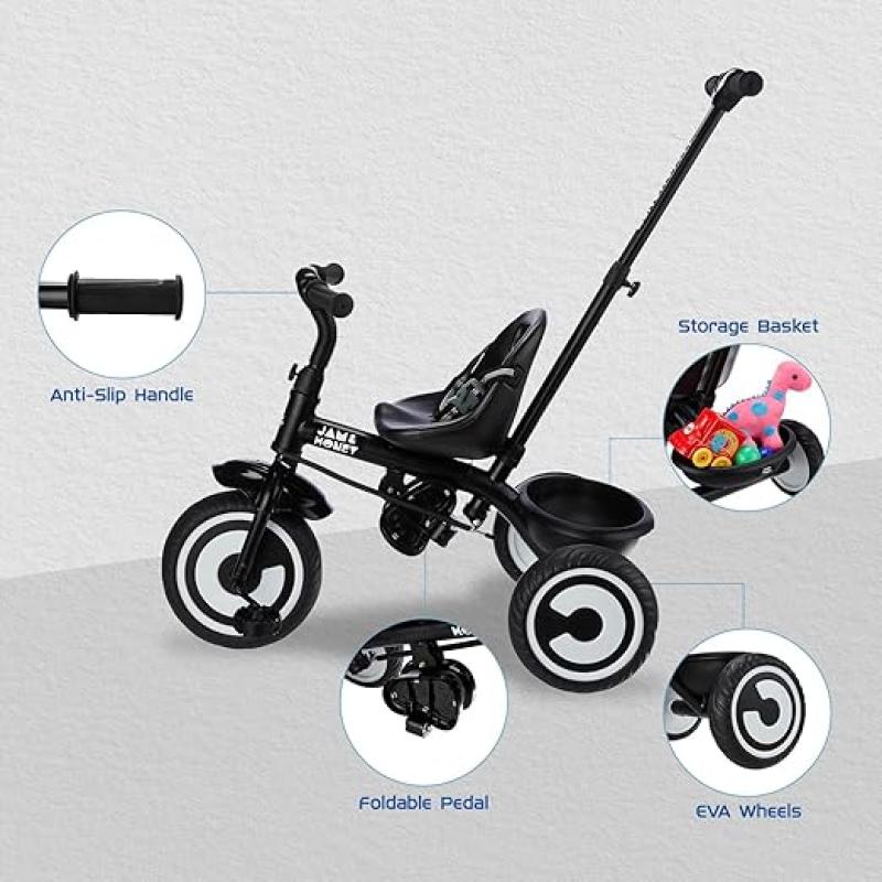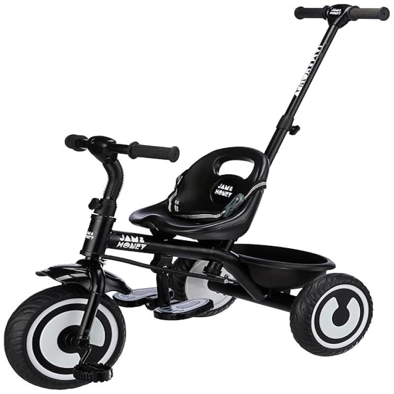 Amazon Brand - Jam & Honey Tricycle for Kids | Seatblet, Parental Handle, & Storage Basket | ISI & BIS-Compliant | for Boys and Girls 2 to 4 Years | 73 x 46 x 90 cm | Black