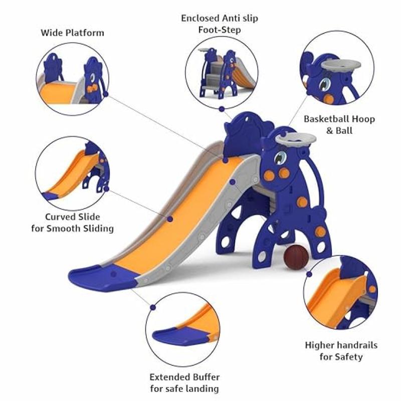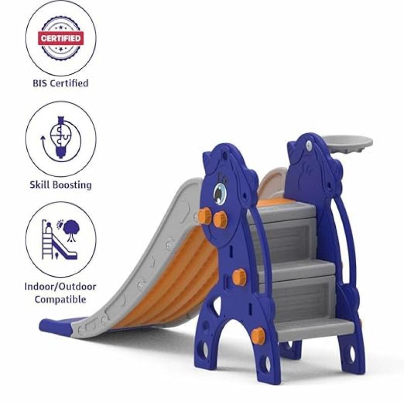 Amazon Brand - Solimo Modern Unicorn Slide-Junior for 2-5 Year Kids| Indoor Outdoor SlideIwith Basketball RingIEasy to CleanIRounded EdgesIEasy AssemblyISmall 42 X 62 X 75cmIBlue&Orange