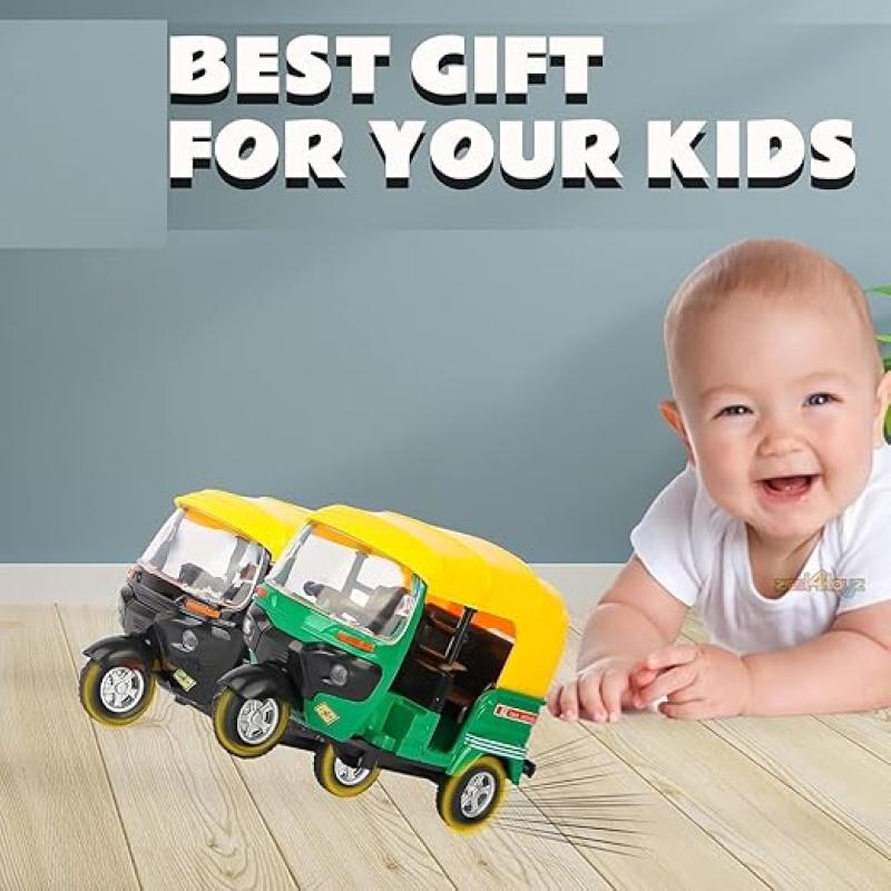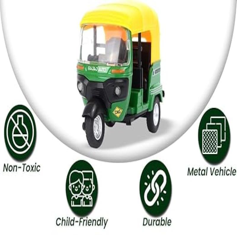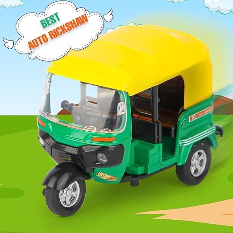 • Auto Rickshaw Auto Rickshaw toy is best tricycle with IC sound flashing top light. High simulation interior, front and rear, Superior quality with flashing light and IC sound.