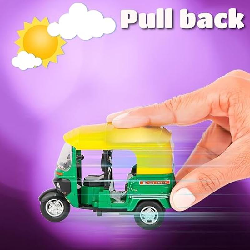 BlackZone Auto Rickshaw | Mini Rickshaw Toys | Miniature Vehicles Toy for Boys, Girls & Kids Pullback Action Auto Rickshaw Kids Toy Car Model with Movable Handle (Black)