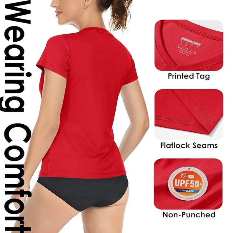 Boladeci Women's Rash Guard Short Sleeve V Neck UPF 50+ Sun Protection Clothing Quick Dry UV SPF Swim Shirts