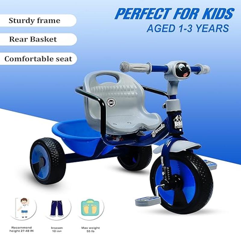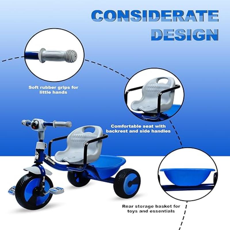 BROCODE Baby Tricycle for 2 to 5 Years Boys Girls | Toddler Cycle with Basket Backrest | Strong Metal Frame | 3-Wheel Kids Bicycle | Easy Assembly Baby Trike Indoor Outdoor Ride Toy Gift