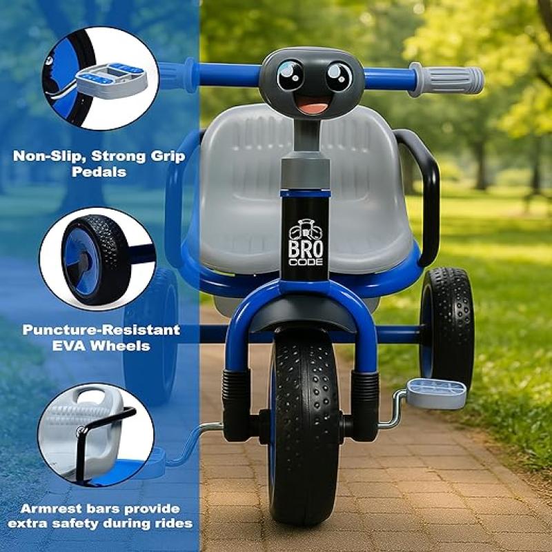 Strong & Durable Frame for Safety and Balance – The BROCODE baby tricycle is built with a heavy-duty carbon steel frame combined with premium plastic parts, ensuring superior strength, stability, and long-lasting use. The 3-wheel toddler cycle design gives children a safe and balanced ride both indoors and outdoors. Parents searching for a baby tricycle for 0 to 3 years baby or baby tricycle for 2 to 5 years can rely on this sturdy construction for everyday play and learning.