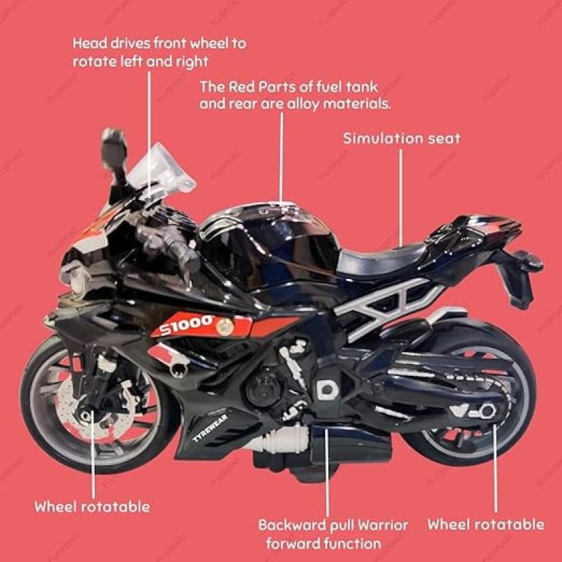 Durable Alloy Construction - Made from strong metal alloy with quality plastic parts, this motorbike toy is built to last. Its sturdy body ensures long-lasting use, whether it's being played with by kids or displayed as a collectible by adults.