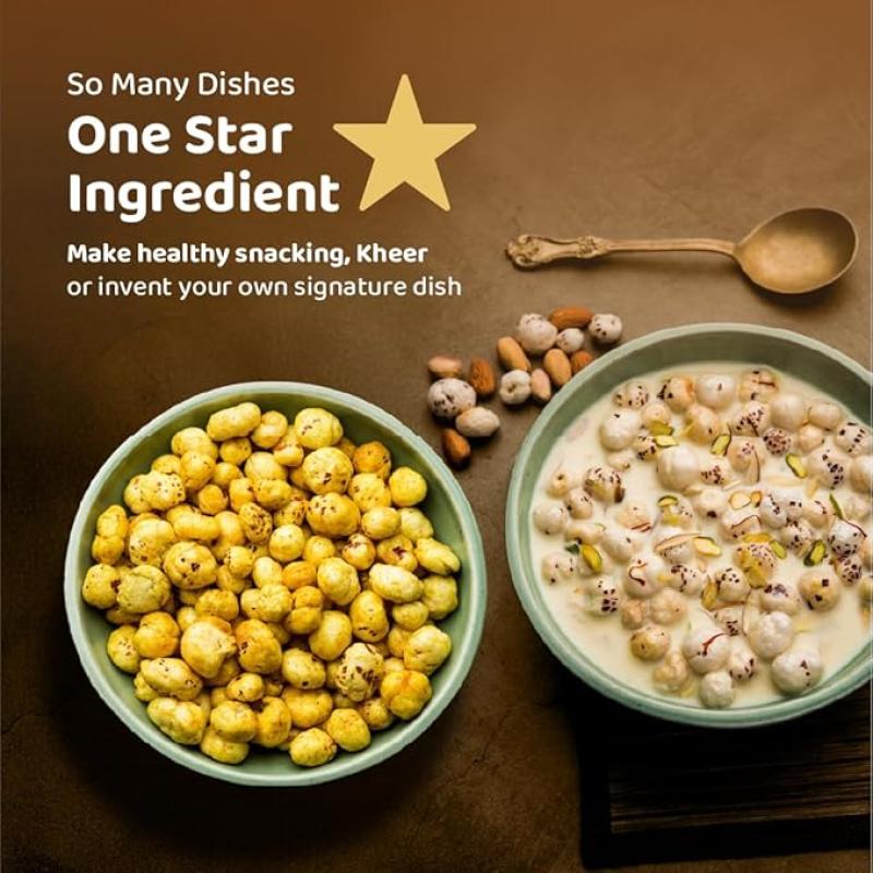PREMIUM, HANDPICKED & CRISP: Our Premium Grade Makhana is known for its large size, light texture, and superior puff. Handpicked and carefully processed, these makhanas are crunchy, wholesome, and ideal for healthy snacking and cooking.