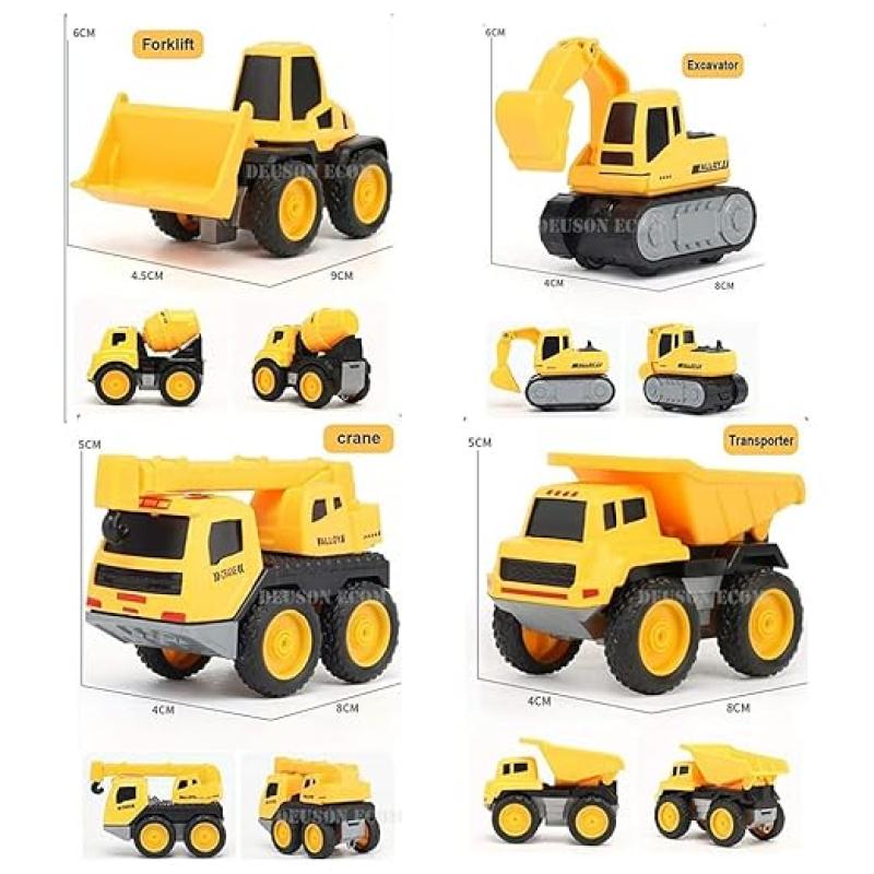DEUSON ECOM Unbreakable Construction Bulldozer Excavator Loader Truck Vehicles for Kids Building Vehicle Engineer Toys for 3 4 5 Year Boy Toddlers Unbreakable Toy for Kid - Yellow