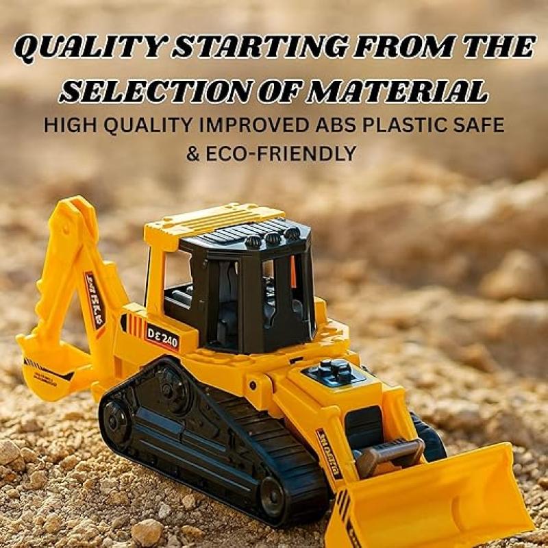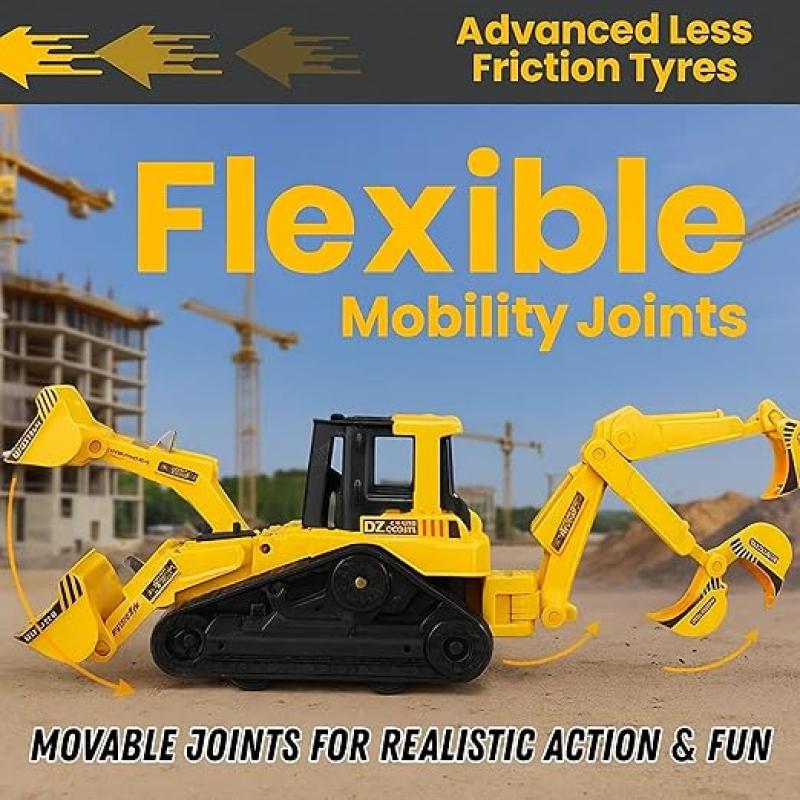 GRAPHENE 2 in 1 Pull Back Friction Power JCB Excavator Construction Vehicle Toy Bulldozer Crane Truck Movable Joints No Battery Engineering Pushdozer Digger for 1+ Years Kids Boy Girl Toddlers