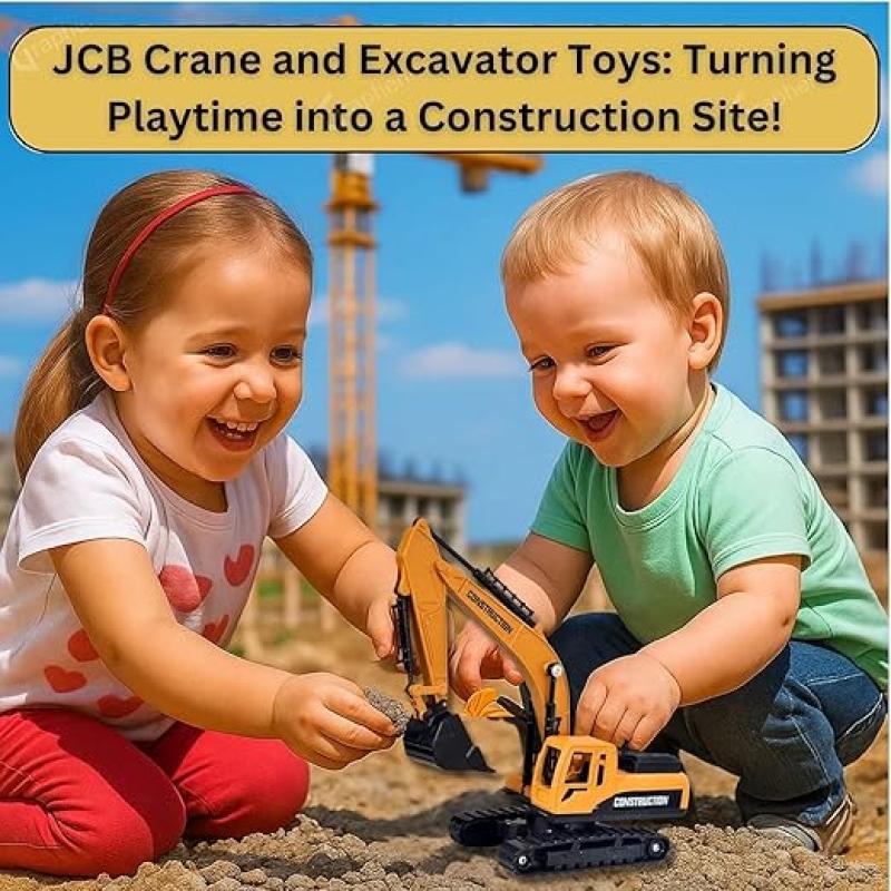 GRAPHENE Excavator Construction Crane Bulldozer Engineering JCB Vehicle Toy Friction Powered Push & Go Moveable Joints Lorry Truck Model Unbreakable Toy Set for Kids Boy Girl Toddler