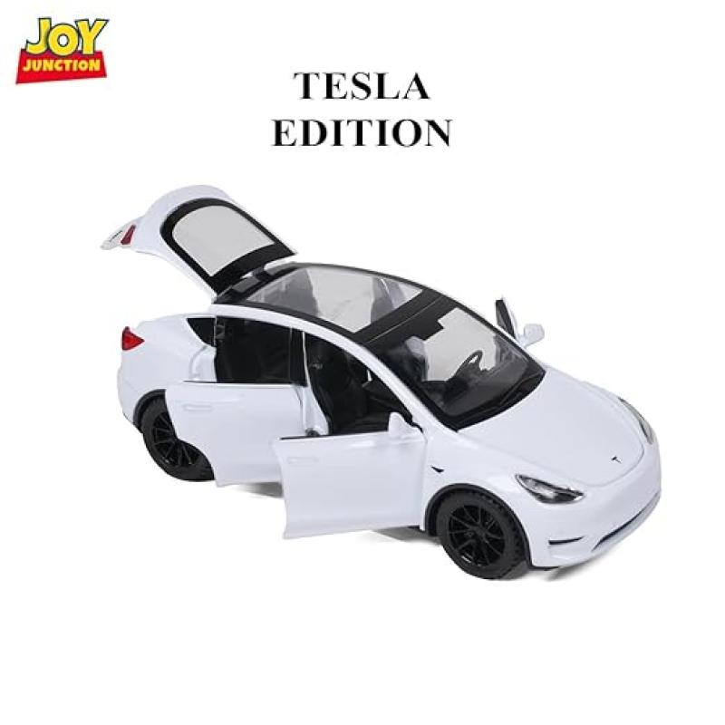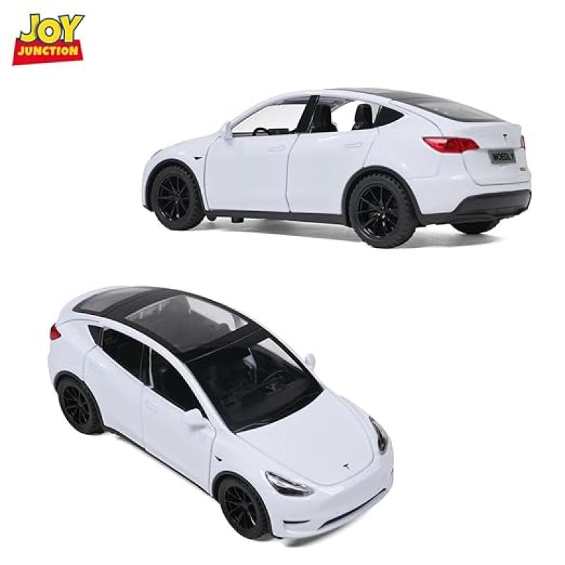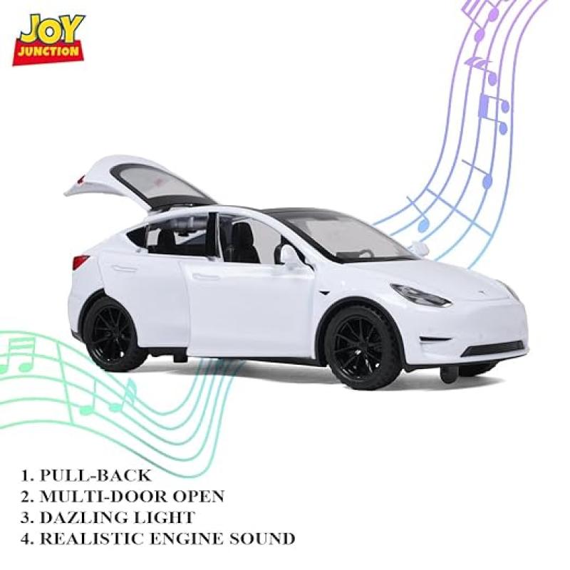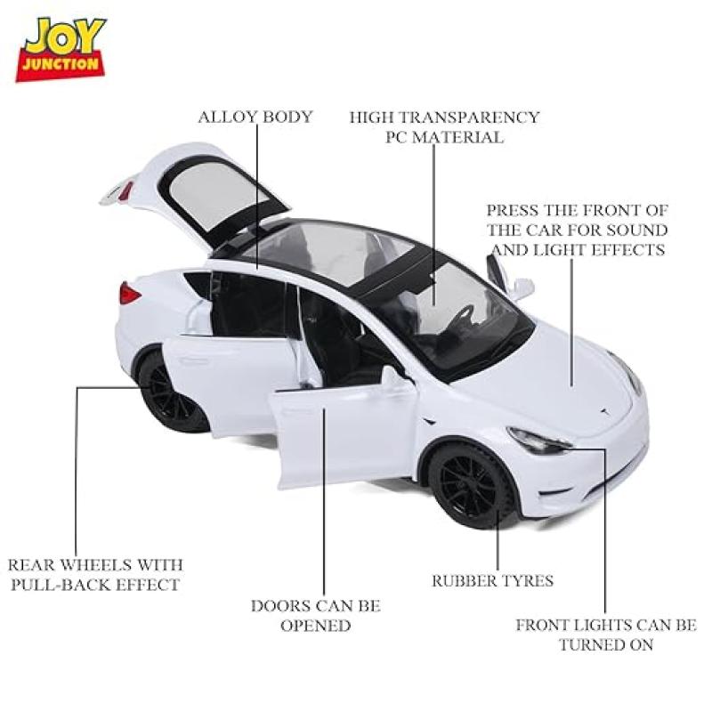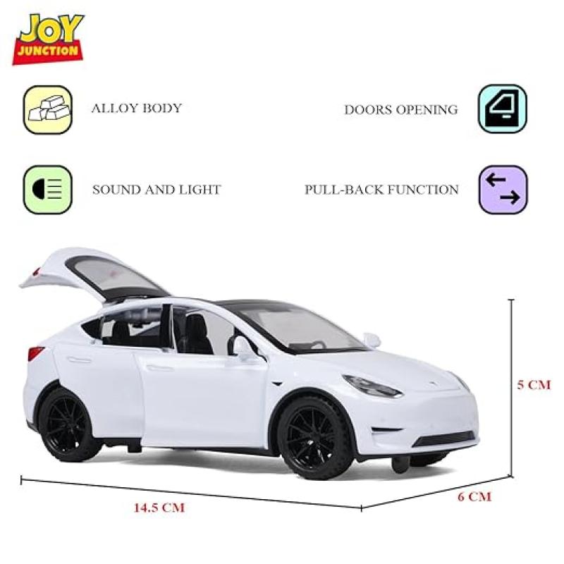 JOY JUNCTION Tesla Model Car 1:32 Exclusive Alloy Metal Pull Back Die-cast Car Die-cast Metal Pullback Toy car with Openable Doors & Light Music (White)