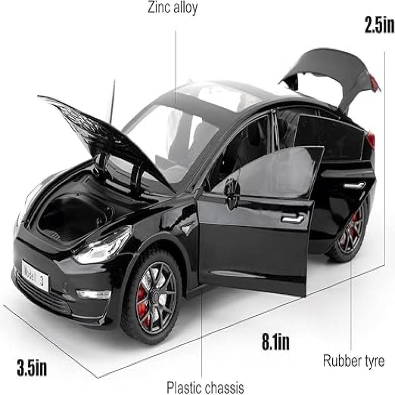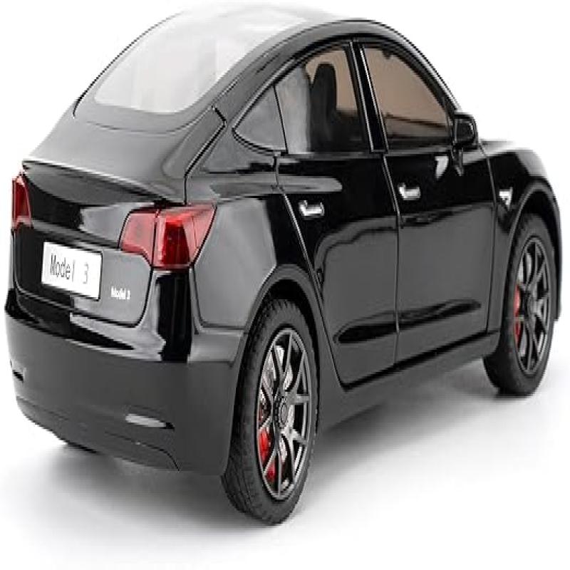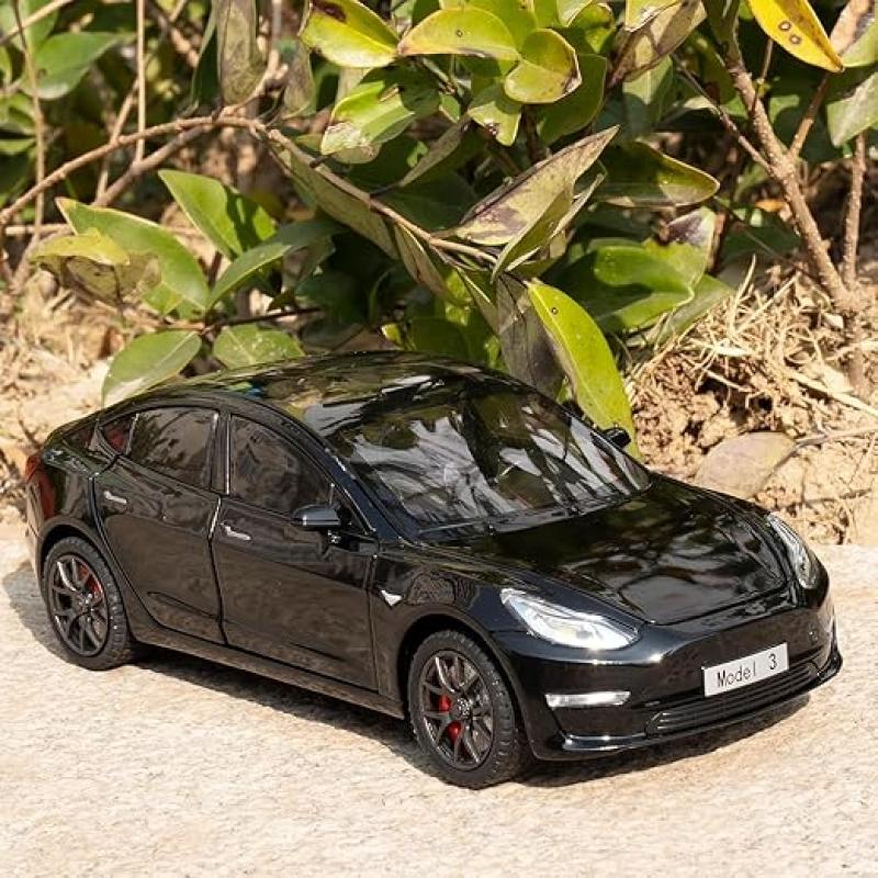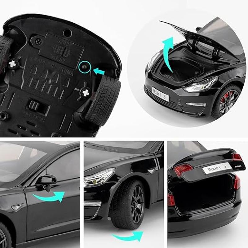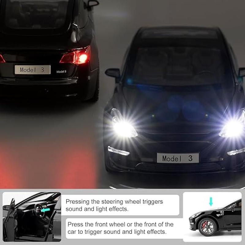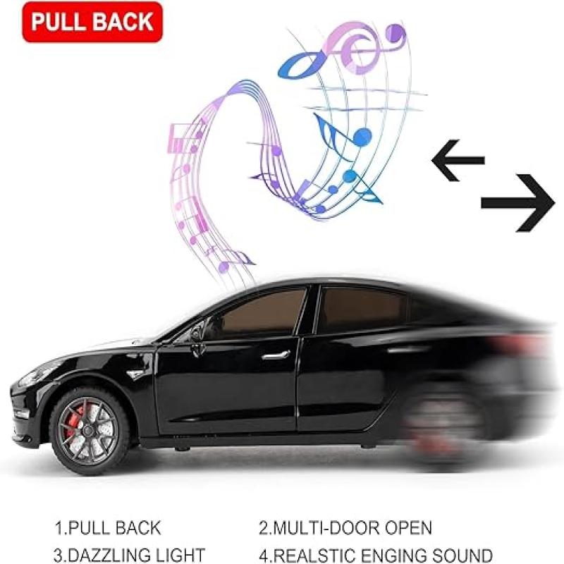 KENIRY1:24 Scale Exclusive Alloy Metal Pull Back Die-cast Car Model with Sound Light Mini Auto Toy for Kids Metal Model Toy Car with Sound and Light (1.24 -Tesla Model 3- Black)