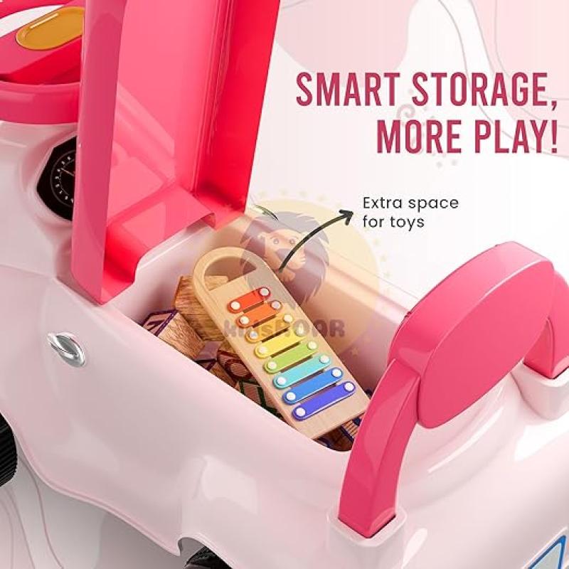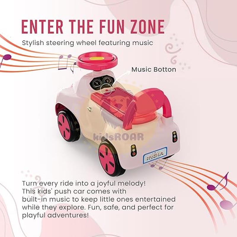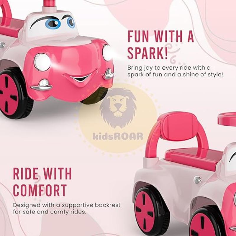 kidsROAR Thomas Push Ride On Car for Kids 1-5 Years | Baby Push Car with Music, 3D Lights & Backrest | Premium Ride On Toy Supports Up to 35kg