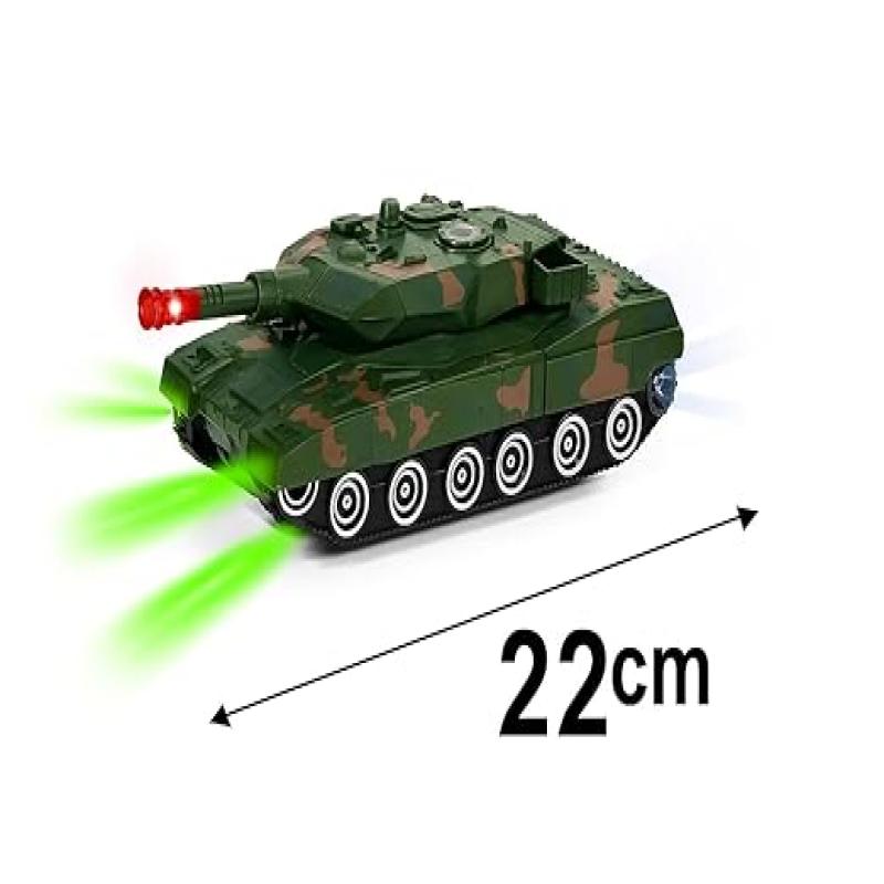 Military Tank Toy with LED Lights, 22cm, Camouflage Design, Moving Tracks