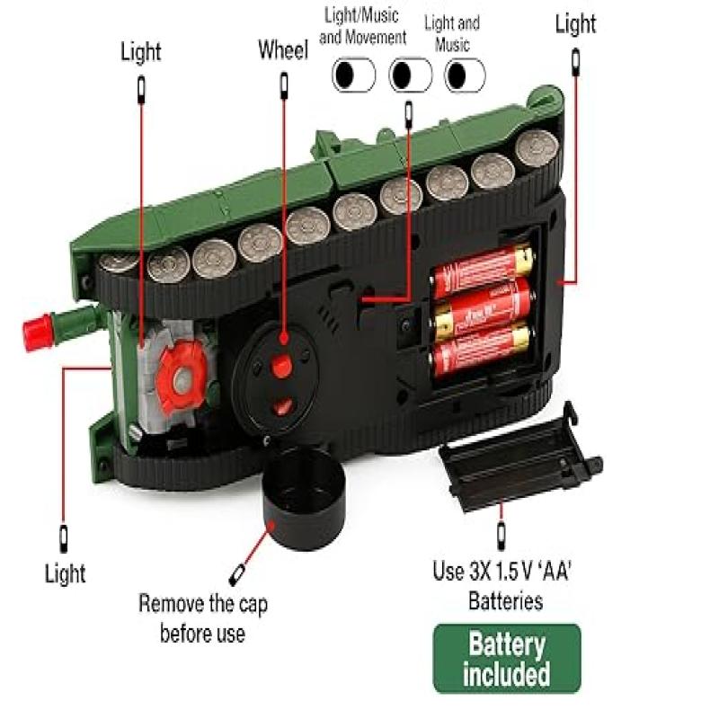 • LED LIGHTING: Equipped with impressive LED light effects that illuminate the tank's path and enhance play value in low-light conditions