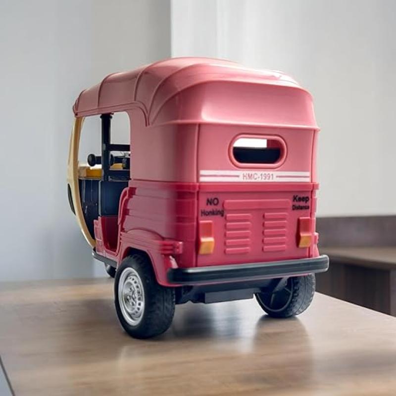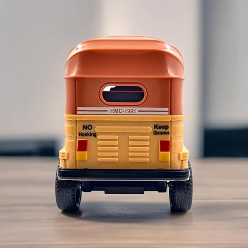• Educational and Imaginative Play: This toy introduces children to the concept of public transportation and the role of auto rickshaws in daily city life, fostering imaginative play and helping develop cognitive and social skills.