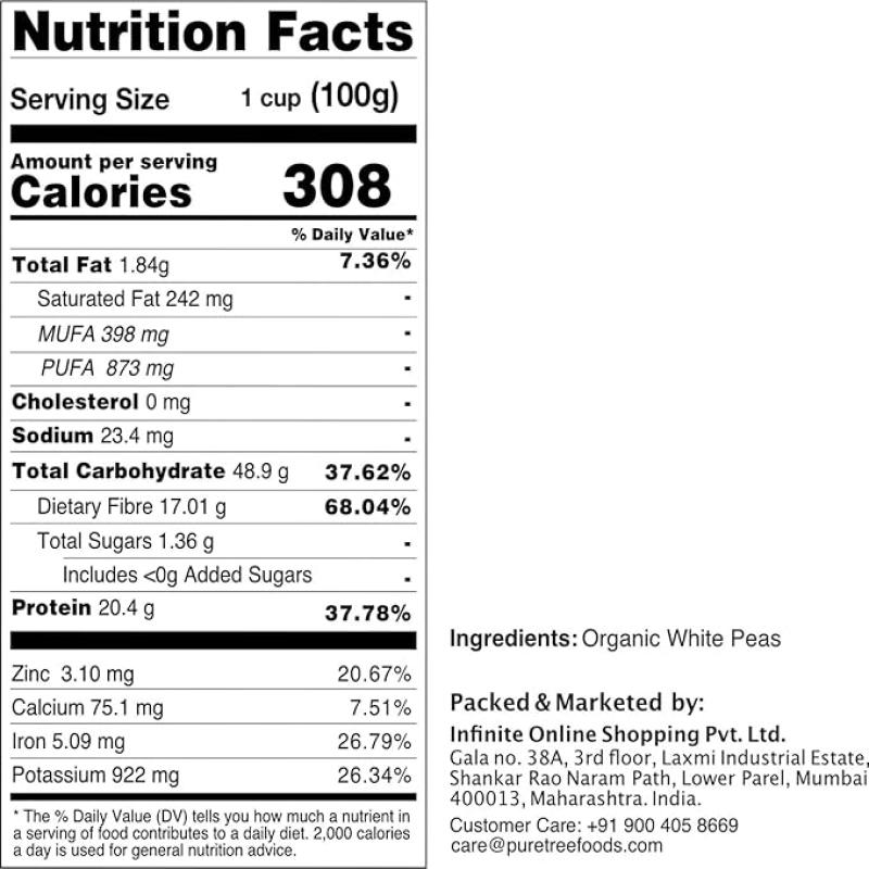 HEALTH BENEFITS- Dried White peas, a small but nutritionally mighty, good source of cholesterol-lowering fiber. Safed Chana provide excellent minerals, B-vitamins & protein-all with virtually no fat.