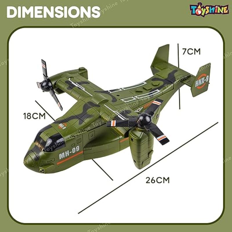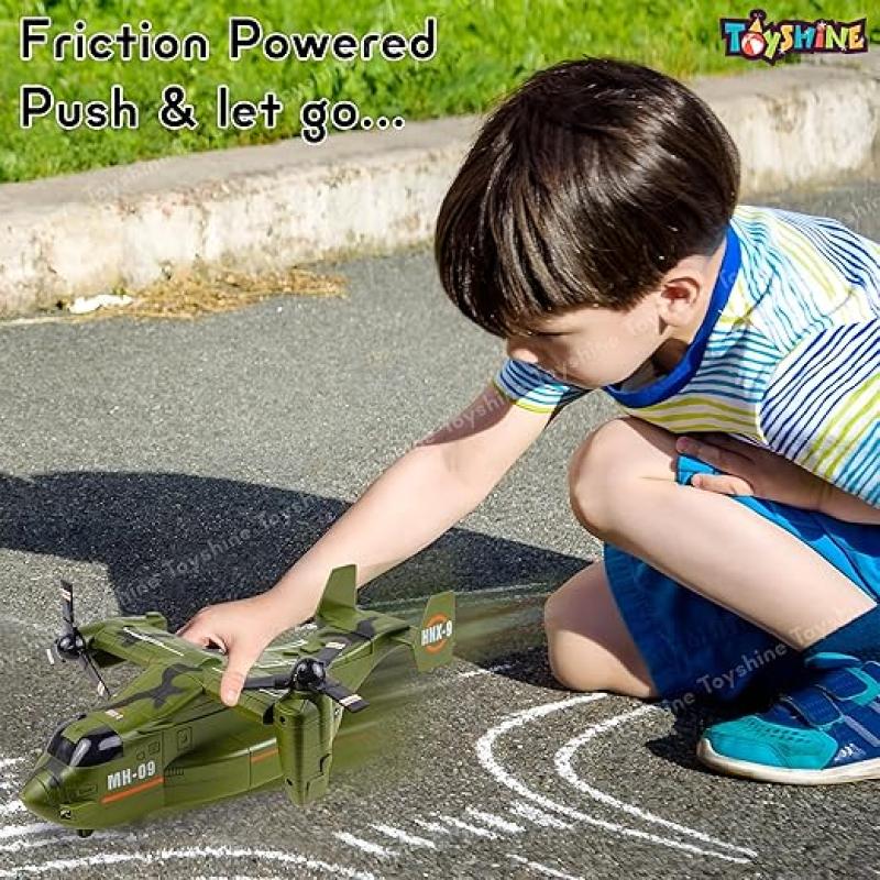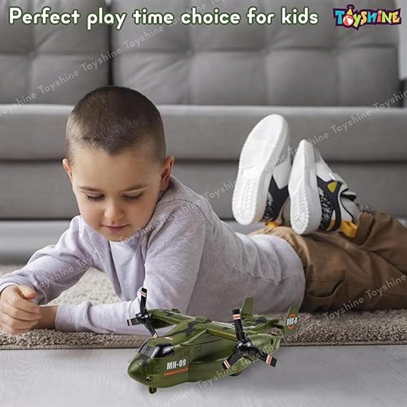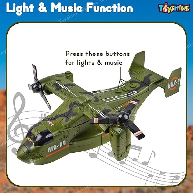 Toyshine 1:72 Scale Friction Powered Osprey Aircraft Carrier Model Battle/Rescue Helicopter Toy with Light & Music Pretend Play Toy for Kids 3+, Green