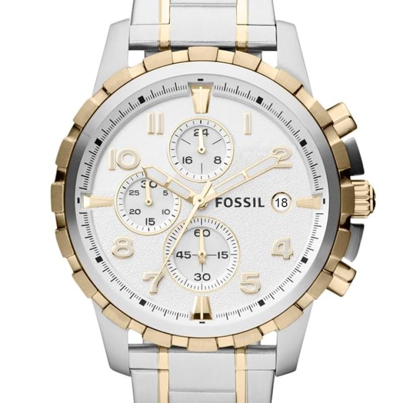 Fossil Analog White Dial Men's Watch-FS4795 Stainless Steel, Multicolor Strap