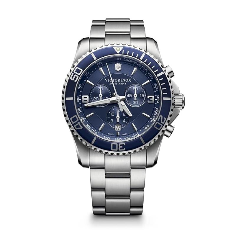 Victorinox Stainless Steel Maverick Analog Blue Dial Men Watch-241689, Silver Band