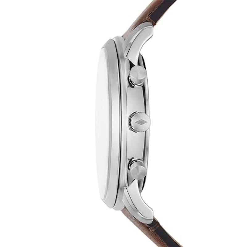 Dial Color: Off-White, Case Shape: Round Band Color: Brown, Band Material: Stainless Steel Watch Movement Type: Quartz, Watch Display Type: Analog Case Material: Stainless Steel, Case Diameter: 44 millimeters 2 years manufacturer warranty on manufacturing defects Remove plastic at crown to start the watch