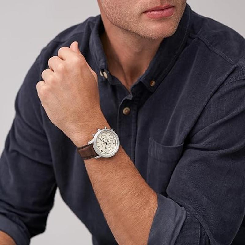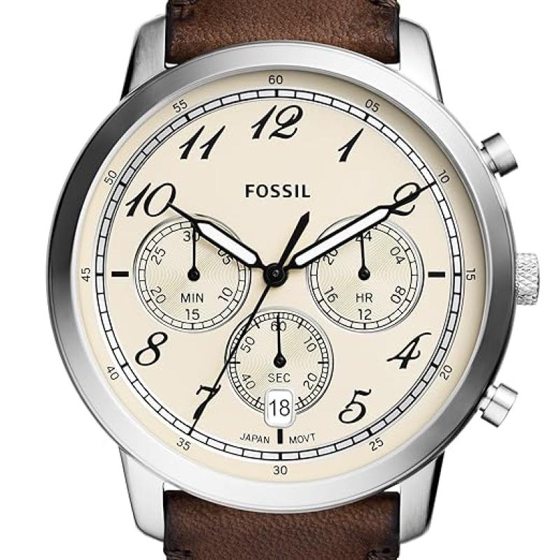 Fossil Analog Off-White Dial Brown Band Men's Stainless Steel Watch-FS5380