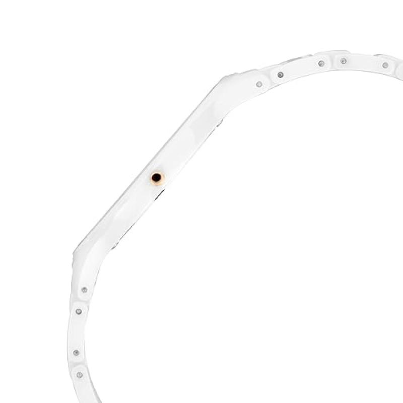 40.5mm contemporary size Features a ceramic case resistant to scratches Ergonomic glossy ceramic bracelet A push-button butterfly clasp for effortless wearing Rose gold hands and indices Knurled crown scratch-resistant sapphire glass crystal