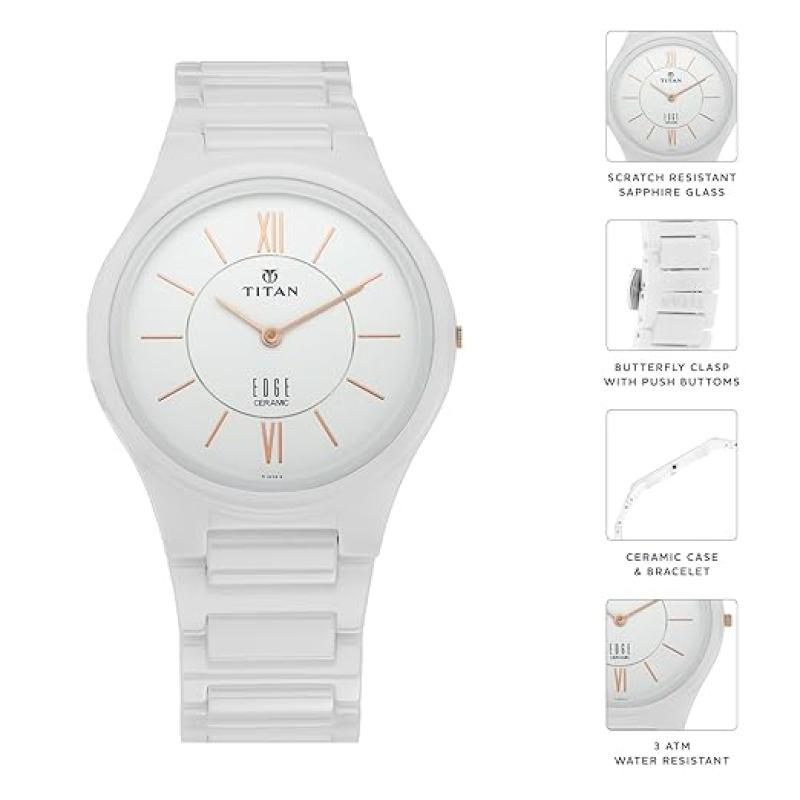 Titan Edge Ceramic White Dial Analog Ceramic Strap watch for Men-NS1696QC04