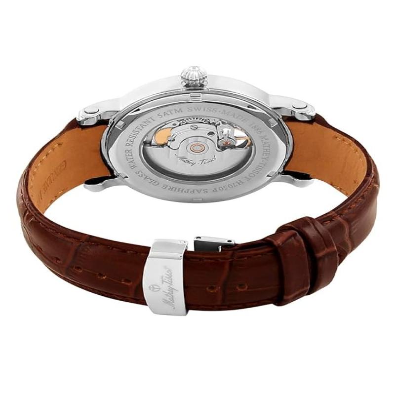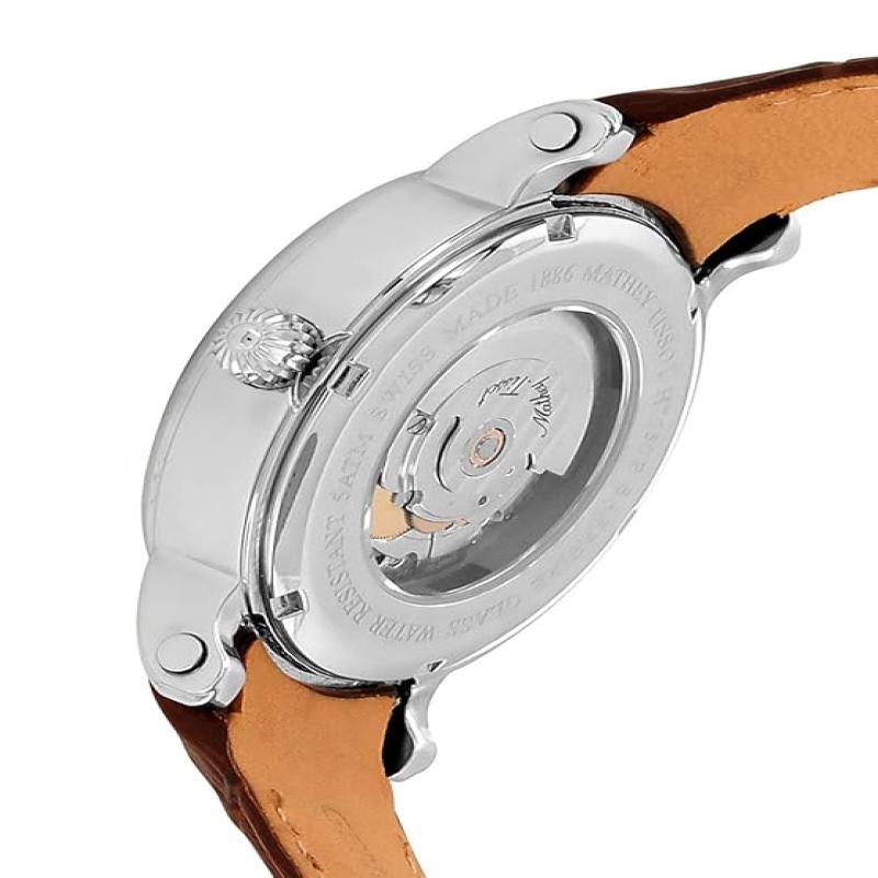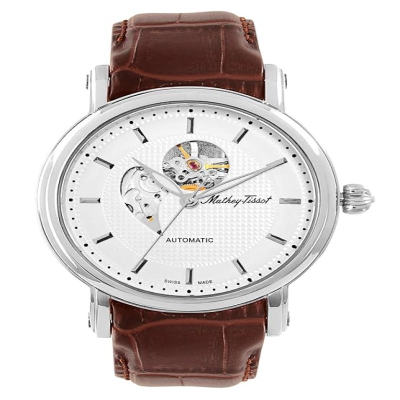 Mathey-Tissot Leather Swiss Made Automatic Skeleton Analog Silver Dial Men Watch - H7051Ai, Black Band