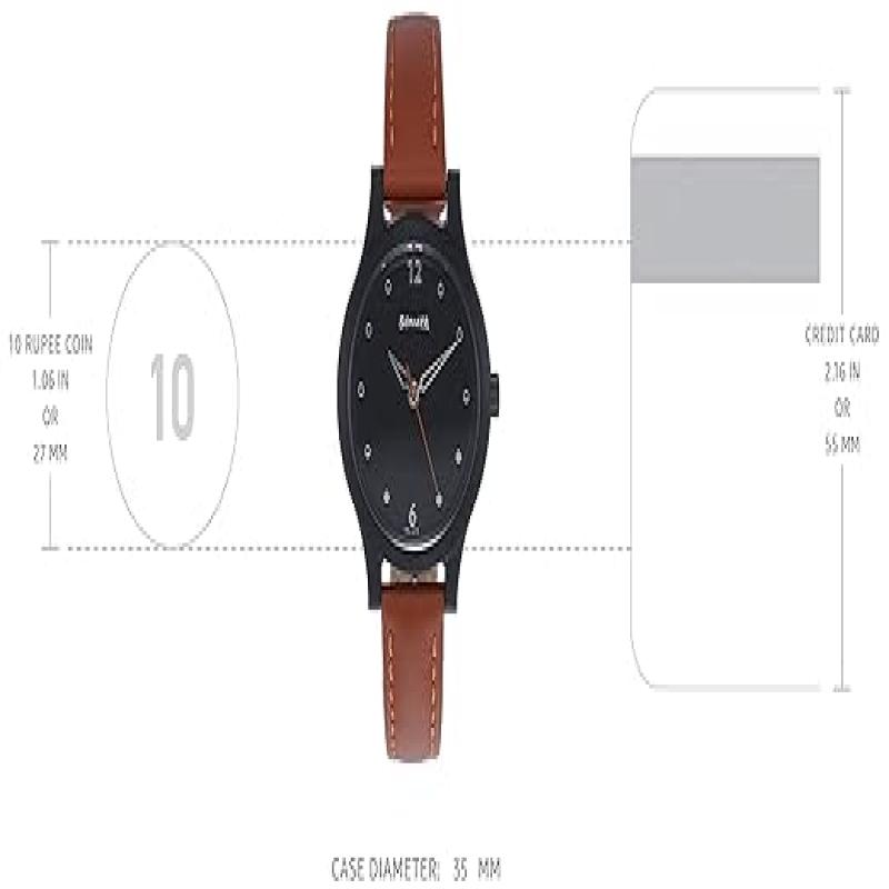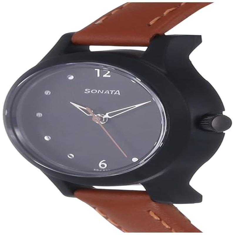 Sonata Essentials Black Dial Women Watch With Leather Strap-NS87030PL04W