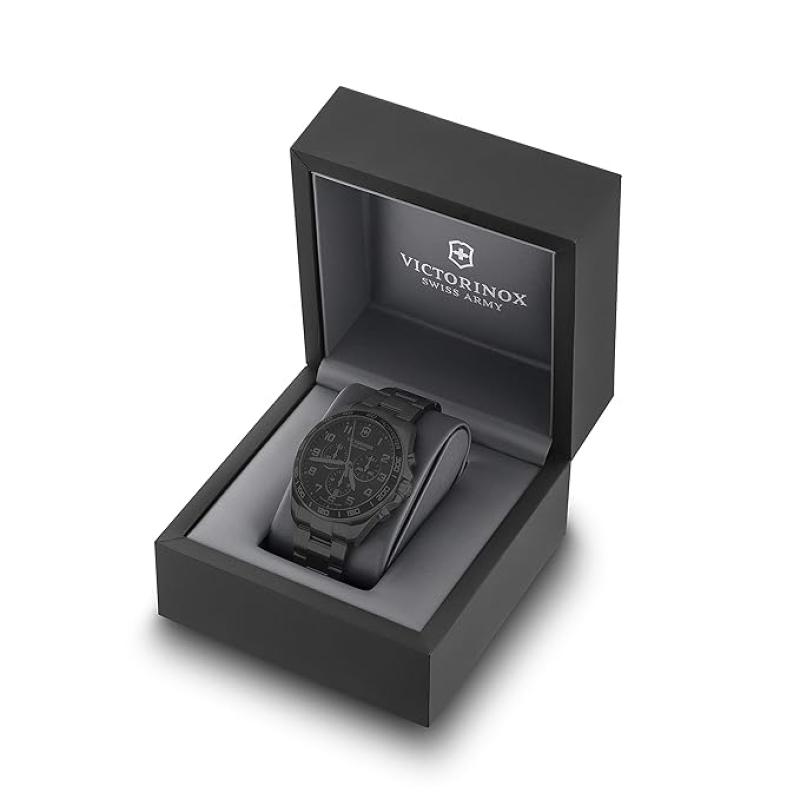 Victorinox Swiss Analog Watch for Men - Black Dial with Stainless Steel Bracelet, Stylish Wrist Watch for Business and Casual Wear - FieldForce Classic Chrono (42 mm)
