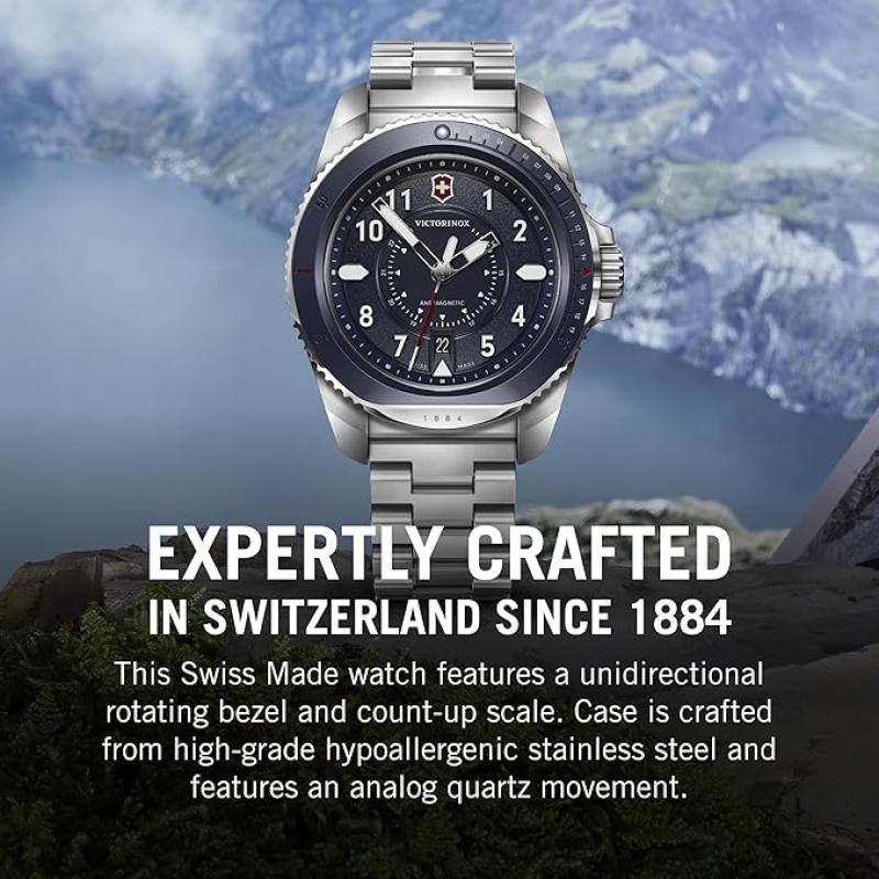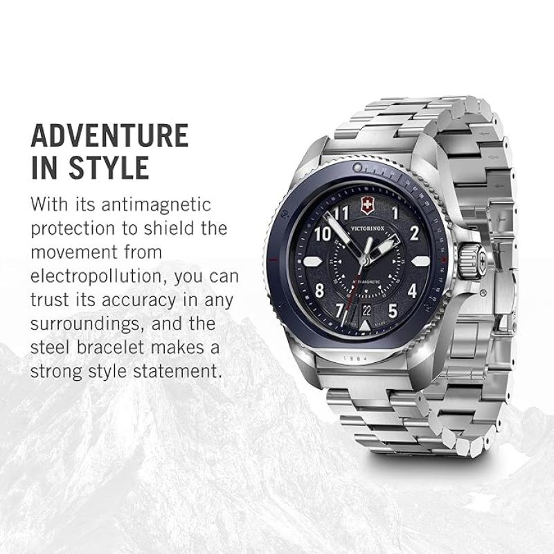 Victorinox Journey 1884 Quartz, Swiss Made Men's Analog Watch, Blue Dial, 43 Mm, Water Resistant Up To 200 M, Stainless Steel Case, Wrist Watch For Men | 241978,Silver Band
