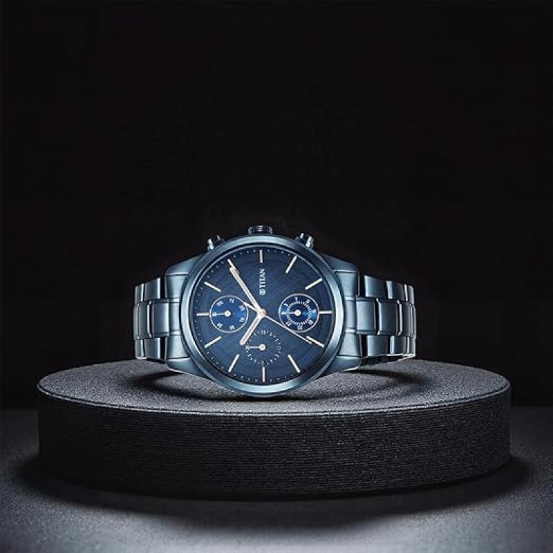 Titan Neo Splash Blue Dial Quartz Multifunction Stainless Steel Strap Watch for Men-NS1805QM01