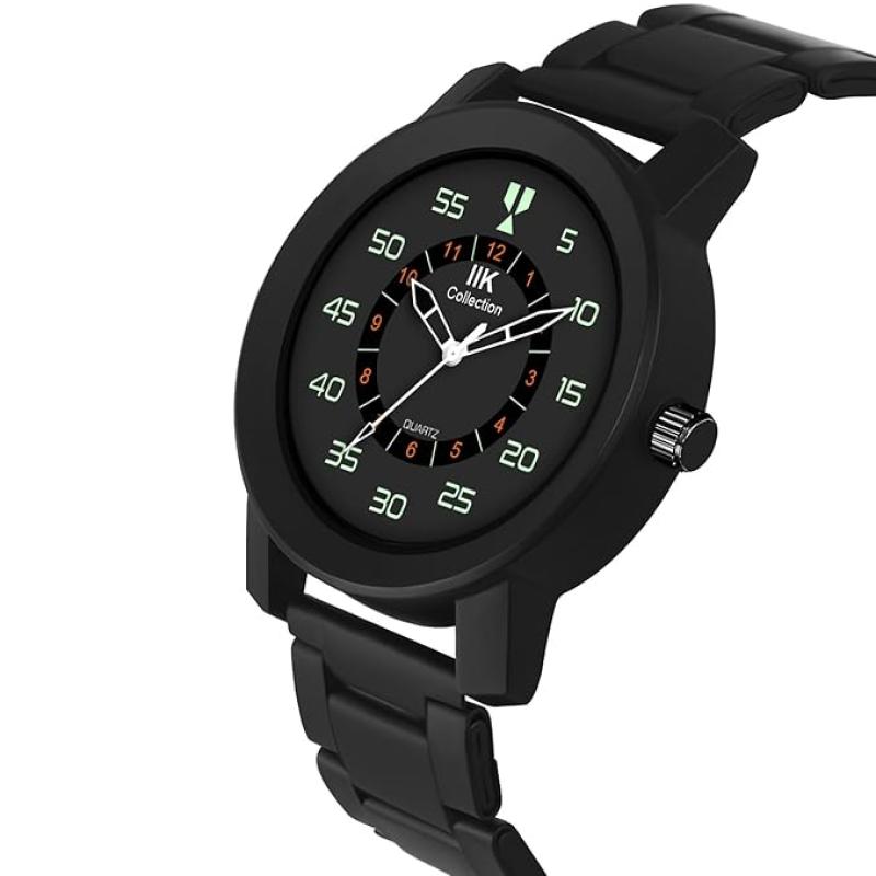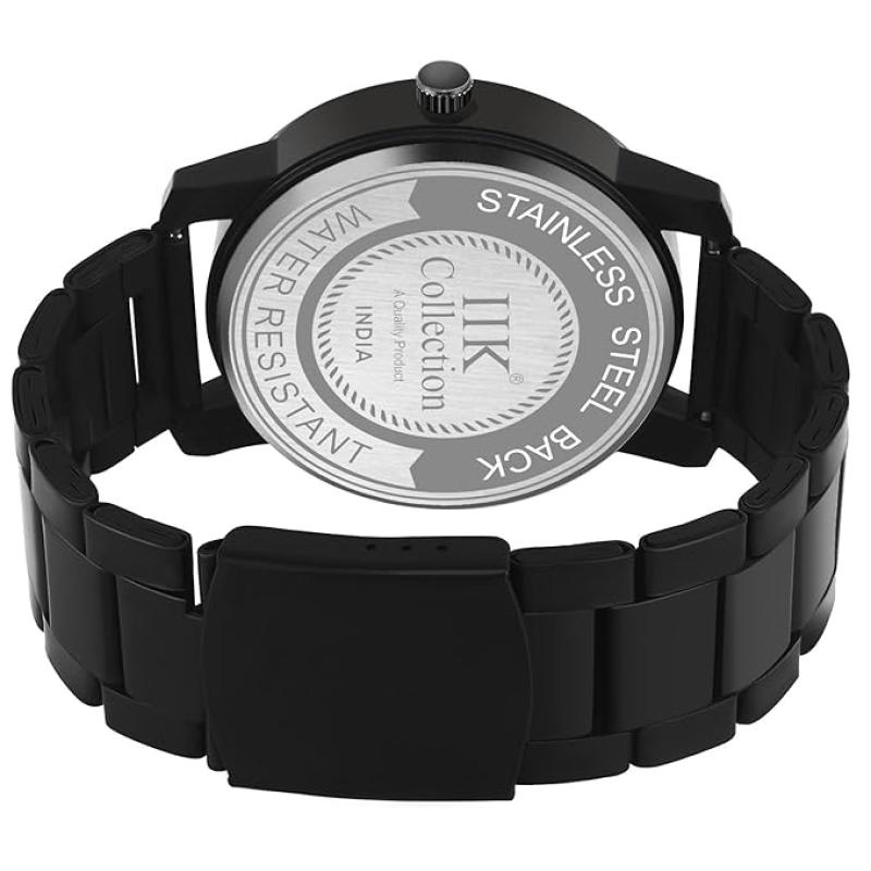 IIK COLLECTION Watches for Men Round Numerical Dial Analogue Men Watch|Long Battery Life|Stainless Steel Bracelet Black Chain with Long Lasting Polish/Adjustable Fixable Silicon Strap|Watches for Boys