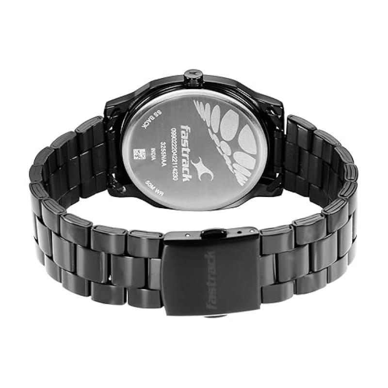 Fastrack Mens Stunners Quartz Analog Black Dial Stainless Steel Strap Watch for Guys-NS3255NM02