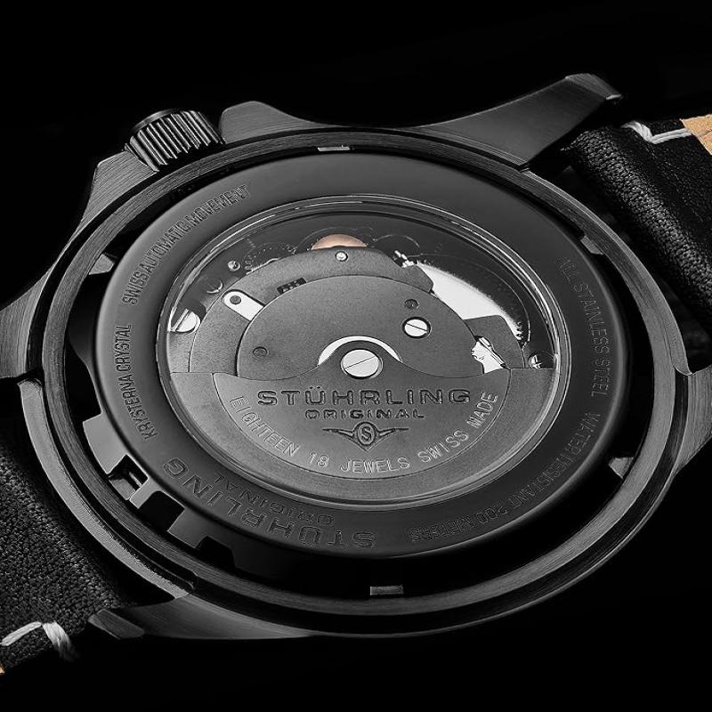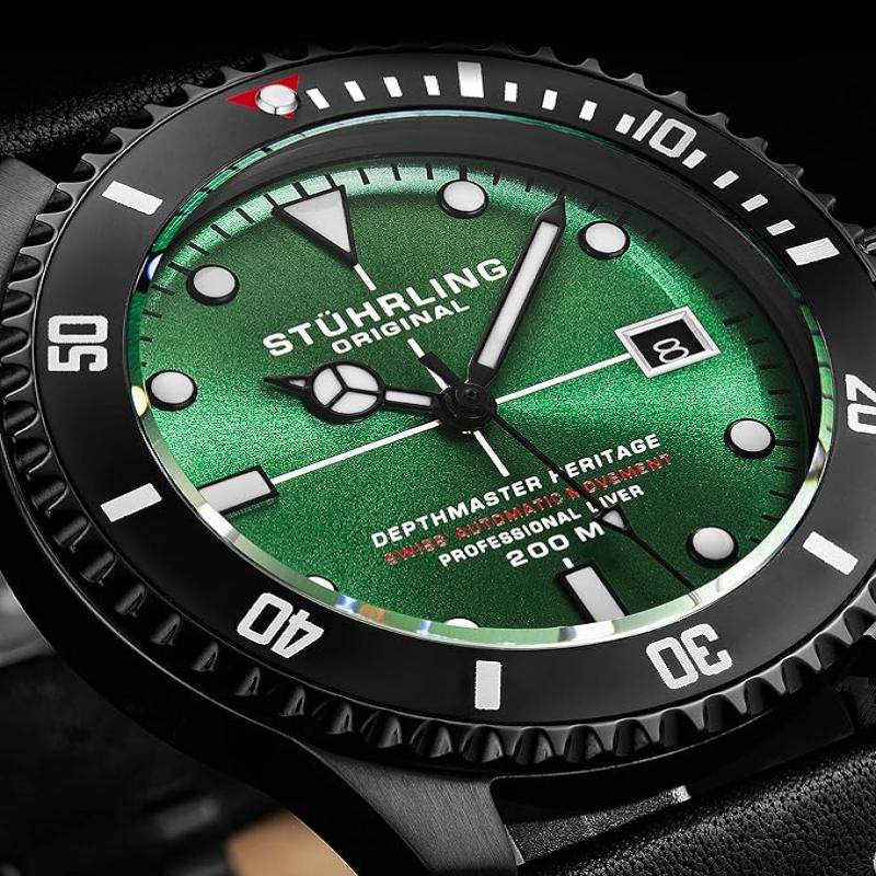 Stuhrling Original Mens Swiss Automatic Stainless Steel Professional DEPTHMASTER Dive Watch, 200 Meters Water Resistant, 42mm with Screw Down Crown and Genuine Leather Strap