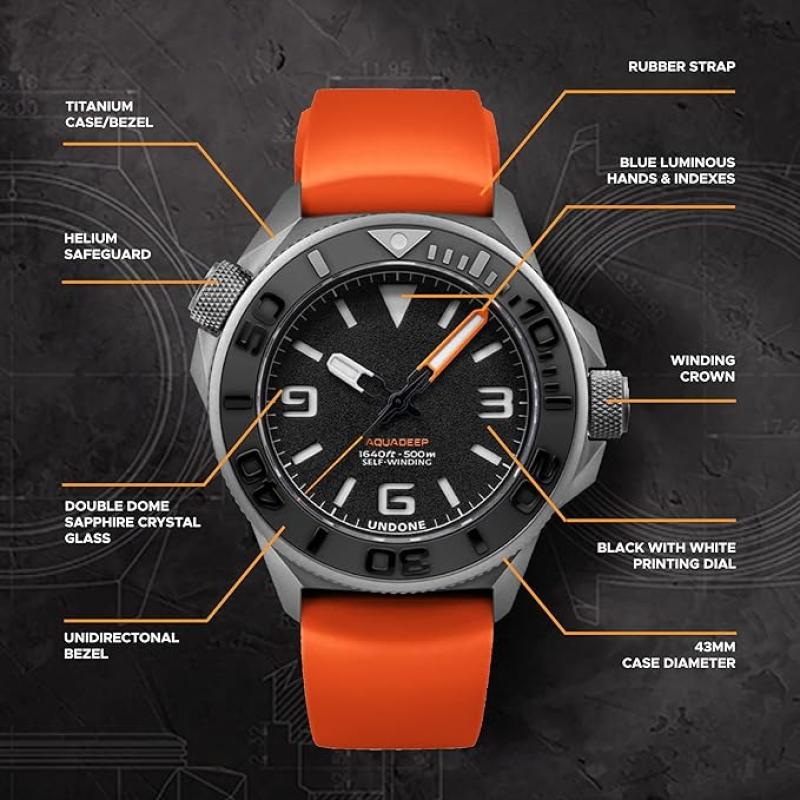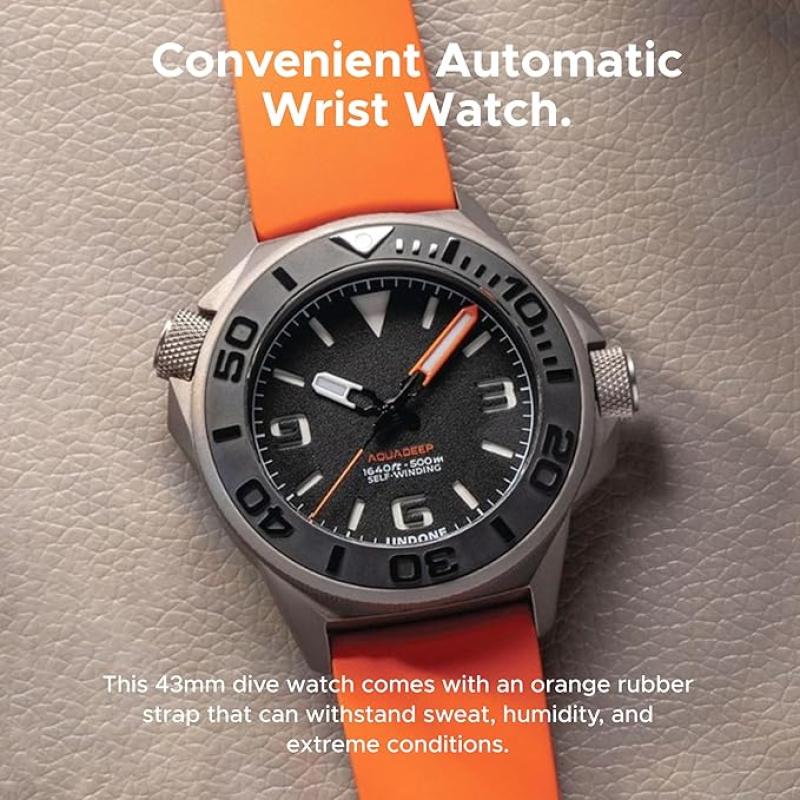 UNDONE Aquadeep Automatic Dive Watch for Men 43mm 500M Water Resistance Wristwatch Diver for Men with Rubber Strap