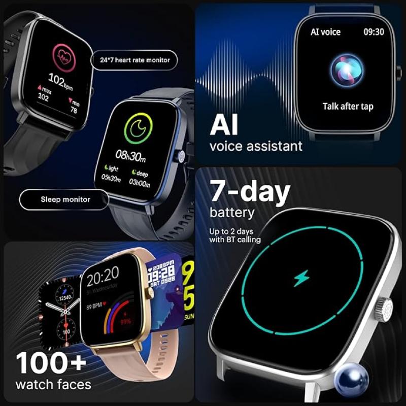 1.81 inches(4.59cms) TFT display, 240*280px, Always on display - No, 550 nits brightness - Enjoy clear and vibrant visuals on its big and bright TFT display.;Up to 7-day battery life - Get up to 7 days of battery life & up to 2 days of power with calling activated. (Battery life can vary due to multiple factors such as turning on continuous HR tracking or turning up the brightness) Charging - The smartwatch features a 260mAh battery that takes approx. 2.5 hours to fully charge. It is recommended that you use a 5W power adapter. Please avoid using a fast-charging adapter to prevent future watch damage.;Music playback - The smartwatch features a remote music control feature that lets you control music played on your phone as long as your smartphone and smartwatch are in Bluetooth range. However, it cannot be used to store music. Volume control - You can control the volume both during music playback and while attending calls. The watch can also play music out loud due to the presence of an in-built mic and speaker. NoiseFit app - Pair the smartwatch to the app to track your progress overtime, get health updates, compete with friends and share your achievements.; Bluetooth calling - Experience an advanced calling experience with the addition of Bluetooth calling. Warranty Type: 1 Year; Target Gender: Unisex; Sport Type: Multi-Sports