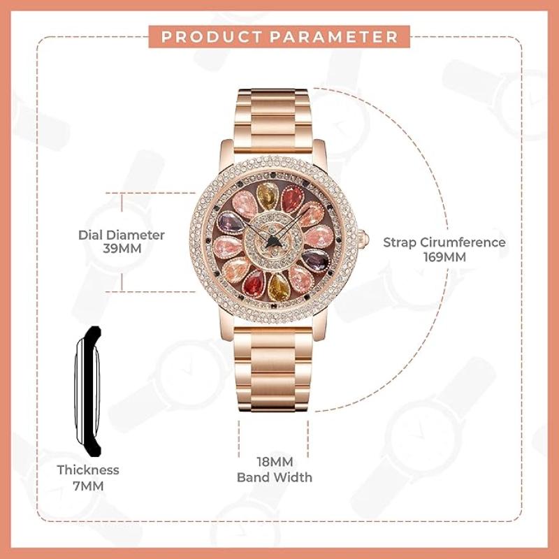 ORSGA Alloy Steel Flora Watch for Women Multicolor Diamond Rotating Dial Women Watches for Girls Ladies Watch Analog Latest Stylish & Unique Womens Watch
