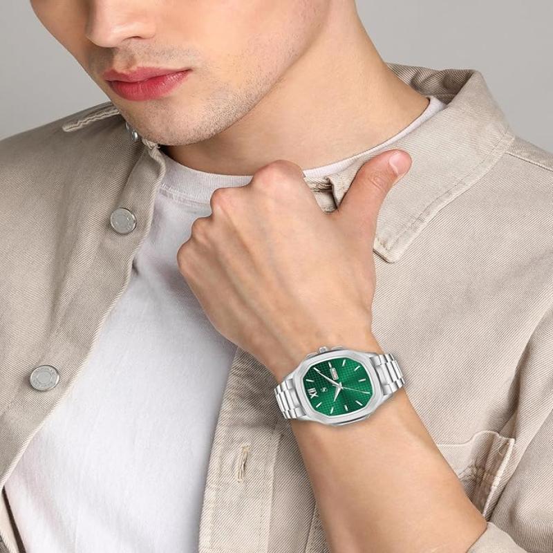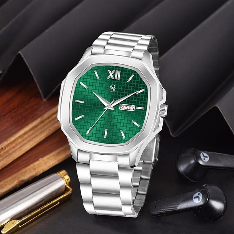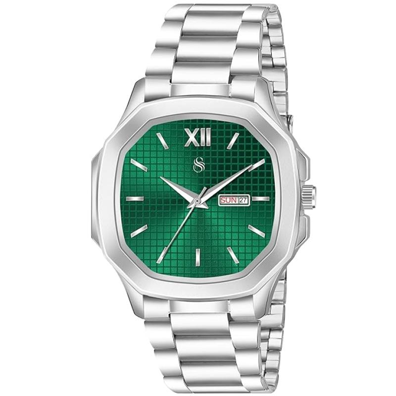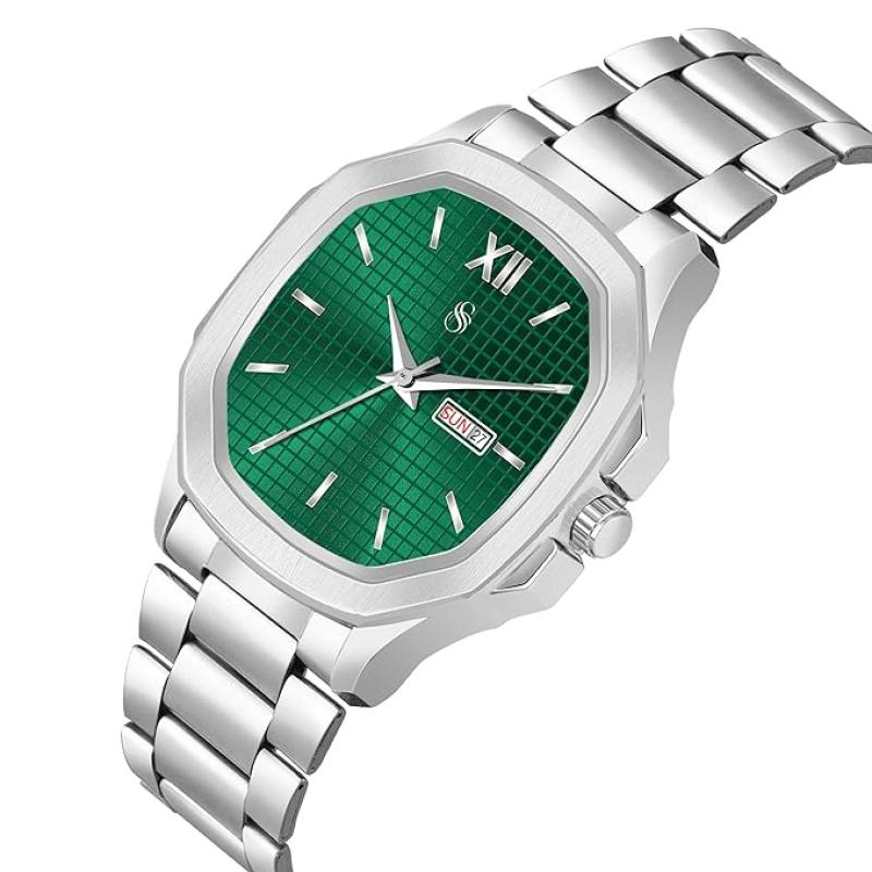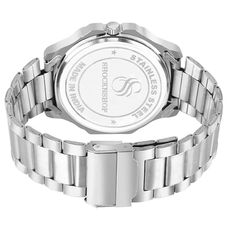 Shocknshop Silver Stainless Steel Analog Square Dial Date Display Wrist Watch for Men -PGNI85