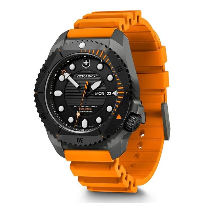 Victorinox Titanium Dive Pro, Automatic Swiss Made Men's Analog Watch, Black Dial,43 Mm, 300M Water Resistant, Orange Rubber Strap, Sellita Sw 200-1 Movement, Wrist Watch For Men|241996,Orange Band