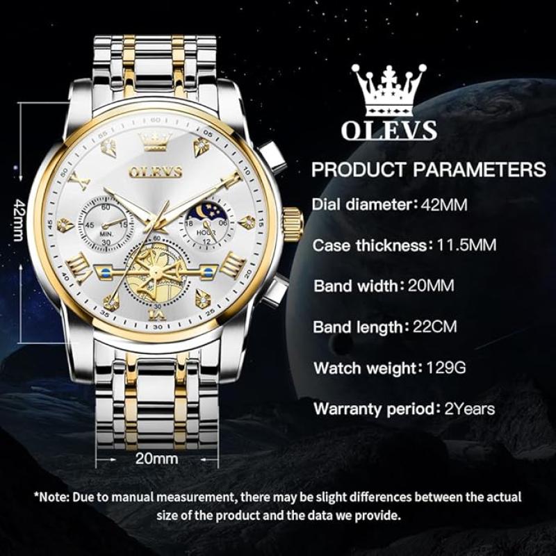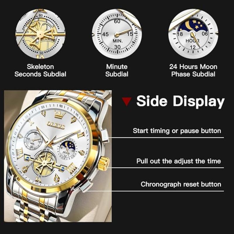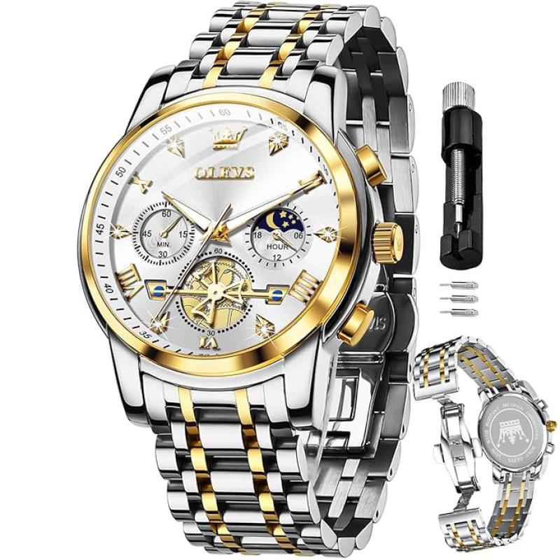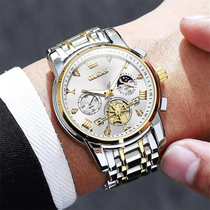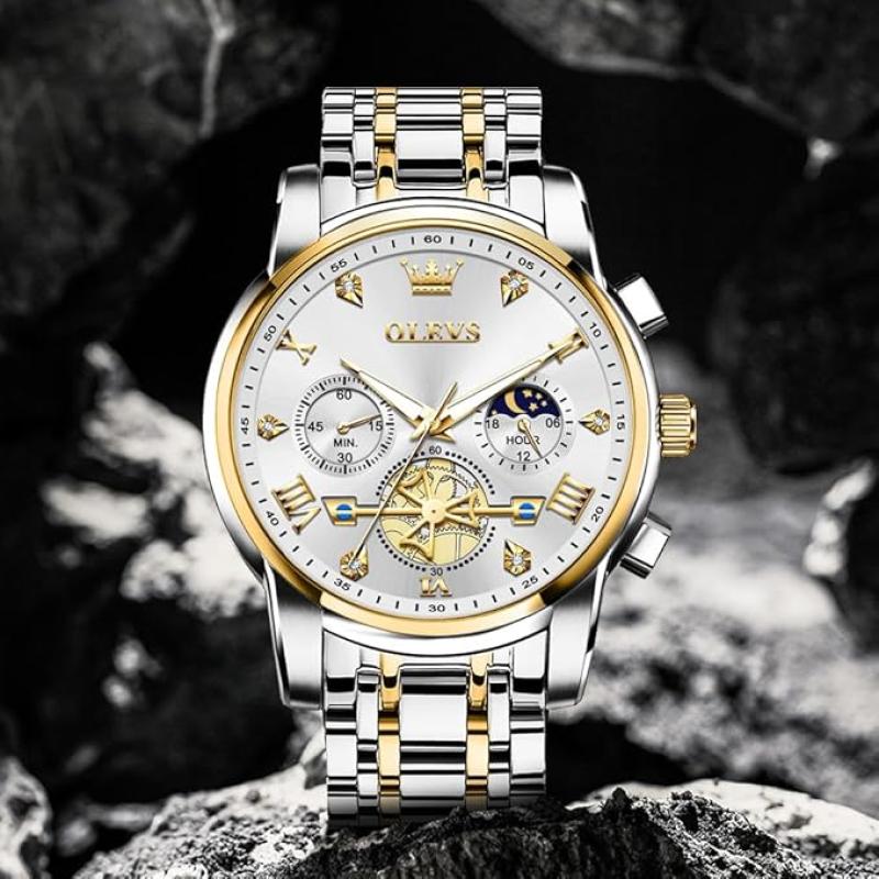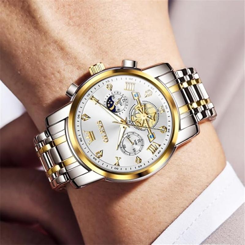 OLEVS Mens Watches Chain Chronograph Business Dress Quartz Stainless Steel Wrist Watch Waterproof Luminous Date