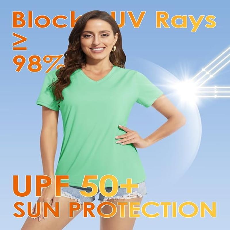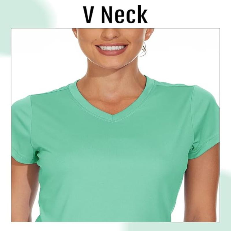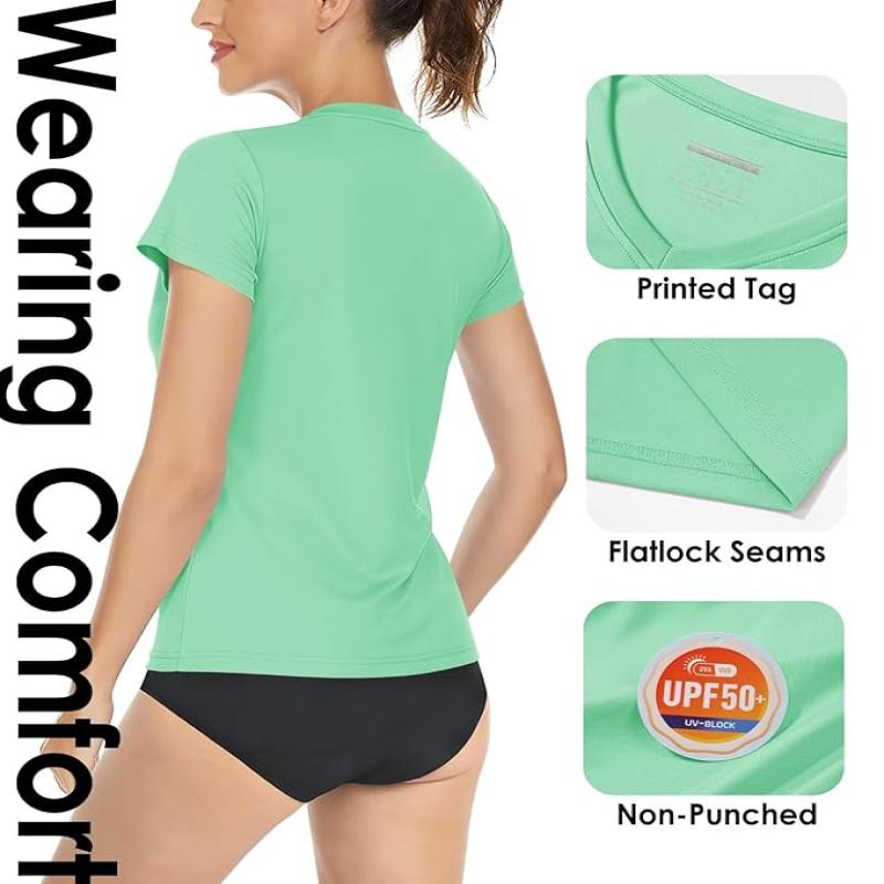 Boladeci Women's Rash Guard Short Sleeve V Neck UPF 50+ Sun Protection Clothing Quick Dry UV SPF Swim Shirts, Mint Green, Small
