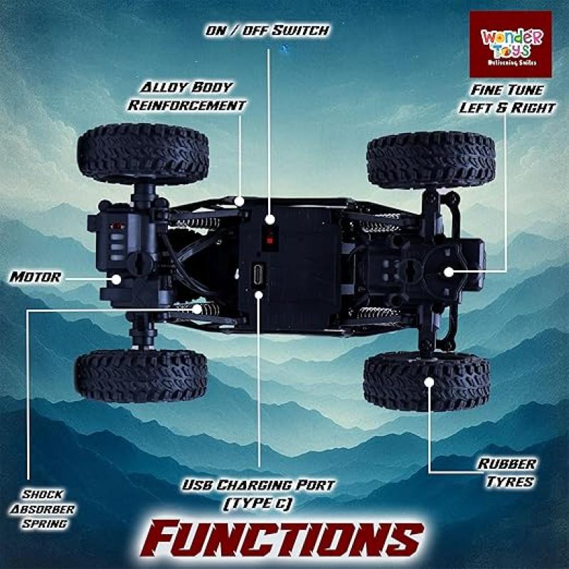 Wonder Remote Control Rock Crawler Master Monster Car for Kids Monster Truck Rock Climbing Car Toy for Kids Silver